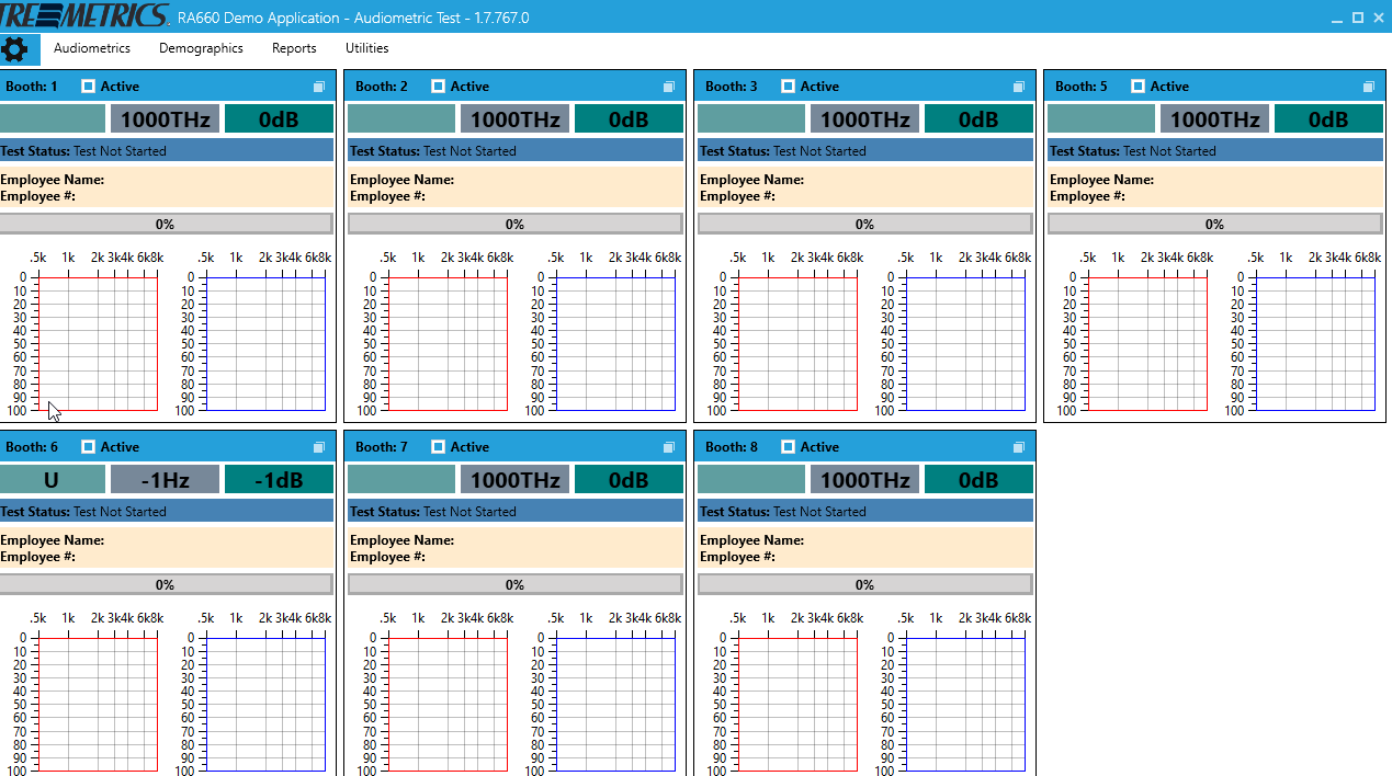 The RA660 is Tremetrics' NEW audiometer featuring a fully integrated Bio-Acoustic Simulator, an optional OSHA/ANSI compliant room monitor, and including the innovative and easy to use HearCon Software Package. Quickly and easily test up to eight people simultaneously using our state of the art design.